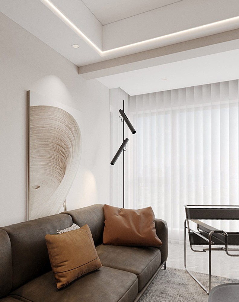 深棕色的皮质沙发搭配棕色调的抱枕,沉稳中又带有一丝温暖。简约造型的落地灯,不仅具有实用性,还作为空间的点缀,提升整体格调。浅色系的抽象挂画,与整体风格相呼应,丰富了视觉效果。