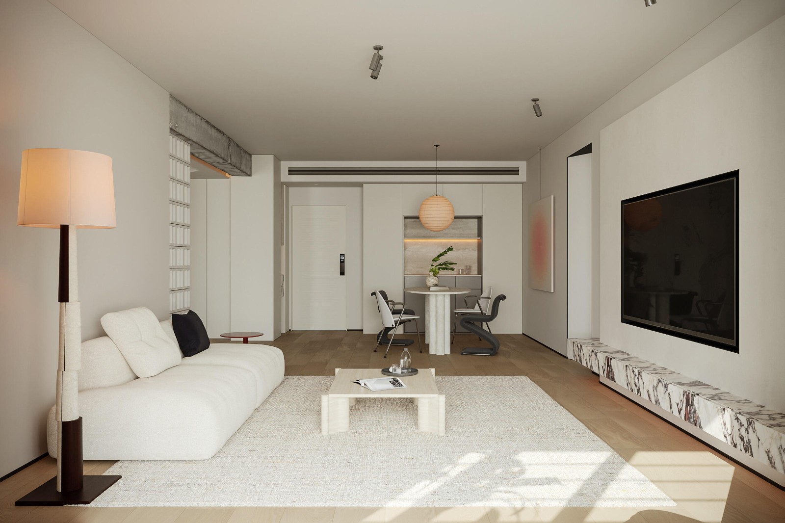 改变卧室入口动线,卧室双开口的仪式感是必不可少的,主卫的空间是没有窗户的,所以在和衣帽间的处理衔接上,希望让空间更为敞亮,衣帽间补充主卧室收纳,依旧有步入式的仪式感。餐厅和西厨结合在一起,满足屋主的居住诉求。
