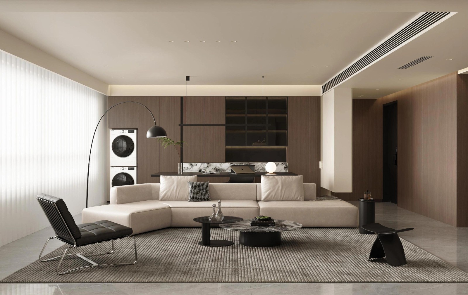 我和家属都喜欢意式极简风, 但又不想要全屋都是深色,怕太暗。 和设计师沟通了想法, 最终呈现出的效果还不错,***又温馨。