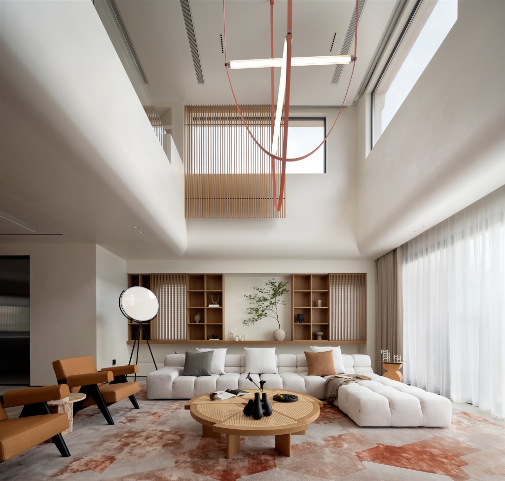 留白后使用原木做点缀。空间放松自然
