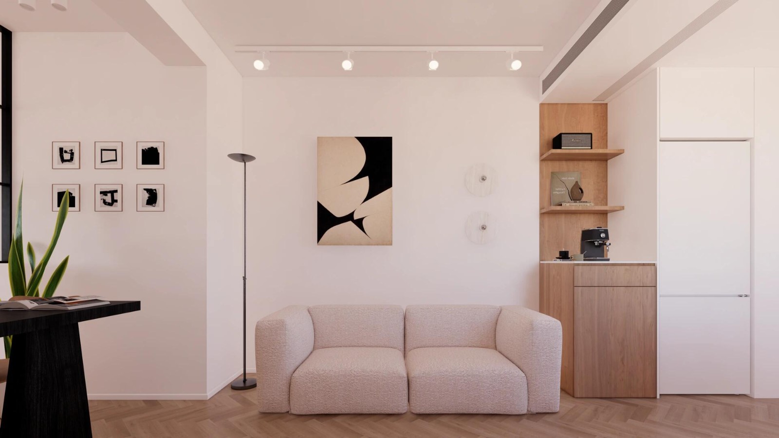因为只是两个人居住的房子,舒适感和采光是***位的。现在大部分人的生活空间会更多地集中在客厅,卧室在大部分时间只是承担睡觉的功能,出于这个考虑,客餐厅都尽量开阔,打掉了厨房的隔墙,并缩小了卫生间面积。同时还把一个工作区放在客厅南侧,让家里的公共空间进步被扩大。