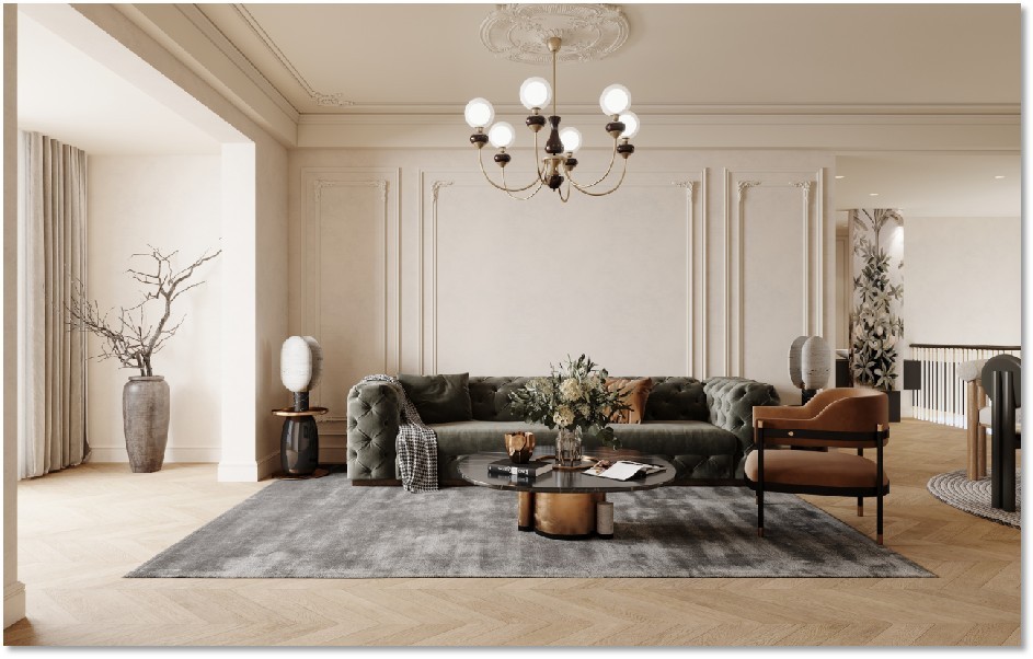 在法式复古的家里,你就是自己的电影主角, 从生活的琐碎中跳脱出去 在复古优雅、法式明媚的空间里, 一帧一幕,娓娓道来 如慵懒的法式假期,是无定义的随性与洒脱 奶杏色为底配上层叠繁复的法式石膏线条 弧形的双开门搭配精致的雕花 线与弧行云流水的构成 勾勒出满目的法式风情