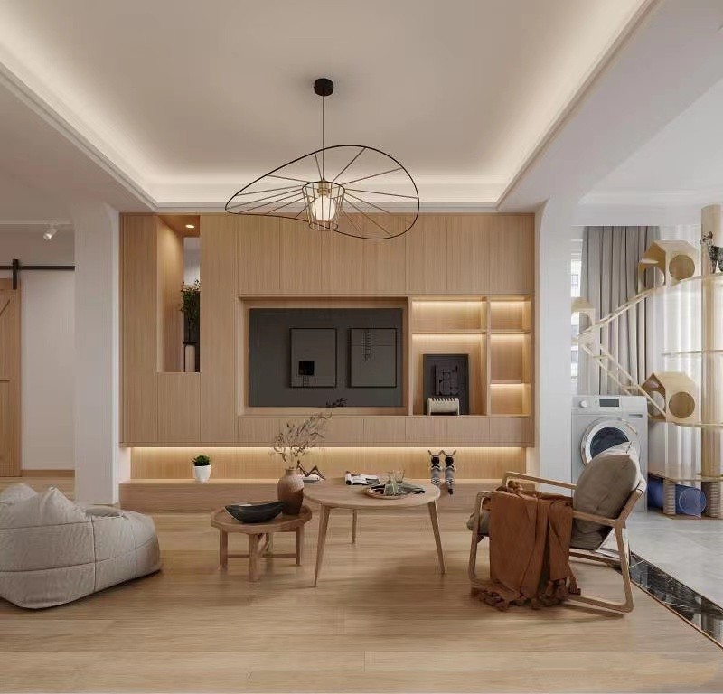 客厅大面积的木色和白色让自然气息扑面而来,清爽的设计让人释放压力,惬意自在。