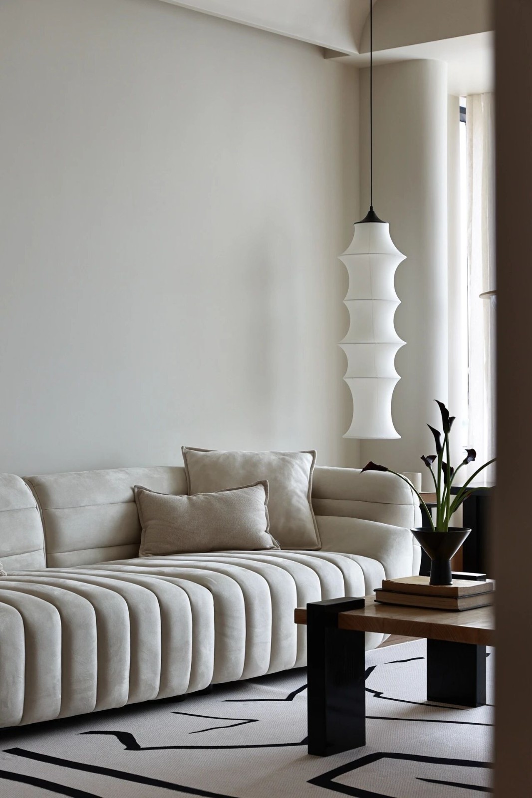 客厅摒弃了传统的主灯照明,转而采用分散式布局。