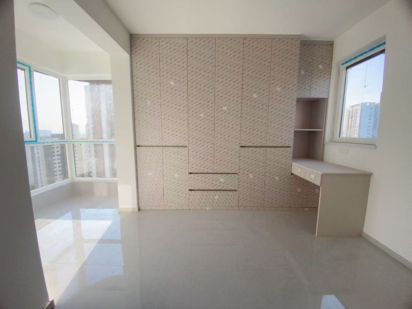 客厅还未摆放家具,后期以黑白灰为主色搭配