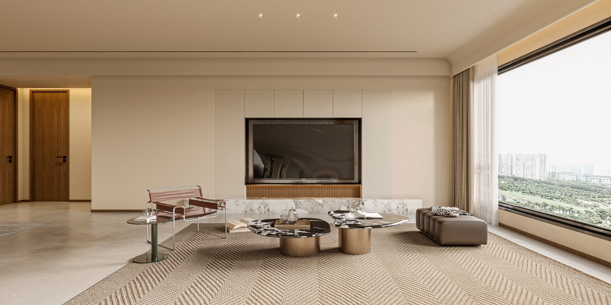 选用棕色作为点缀,能够营造出明亮,宽敞的空间感,选择具有设计感的家具,配饰精致,简约的挂画、雕塑或绿植,为空间增添生气和趣味。