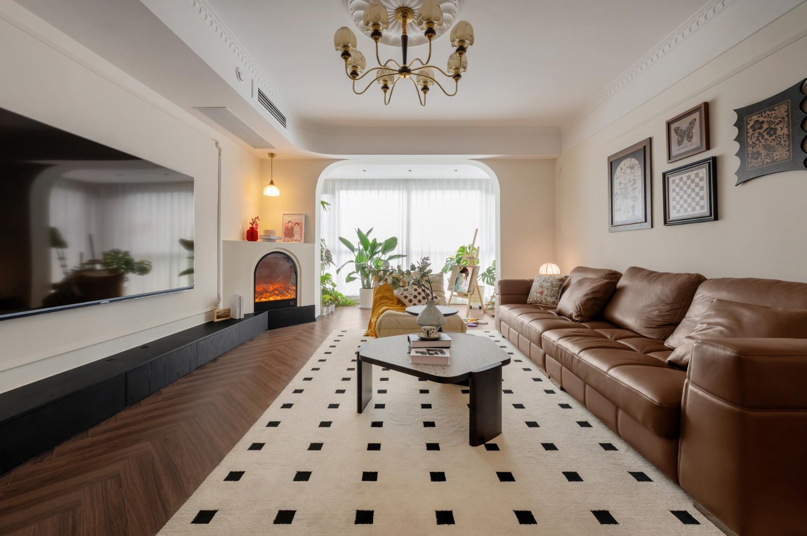 这是一场,法式复古与老钱风交织的空间叙事。摒弃浮华,通过材质、光影与比例共舞,呈现一个历久弥新的治愈栖息地。 壁炉散发出的耀眼光芒,让家的每处角落都充斥着自然温馨的触感,感受此间美好。