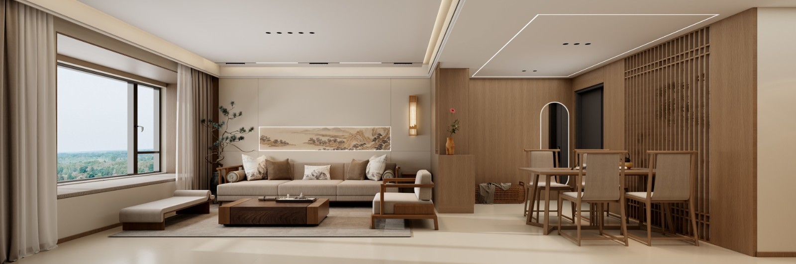 户型南北通透,通风良好,整体安排动静分离,有着非常好的动线。。在整体的规划中以中式为主加现代简约,整体规划并然有序,动线合理