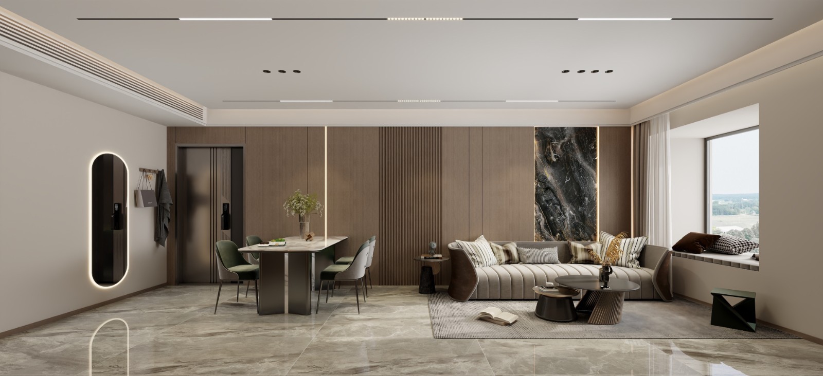以入户为视角,整个空间划分明确,进行了干湿分离,使用的功能分开,可以更好的使用。