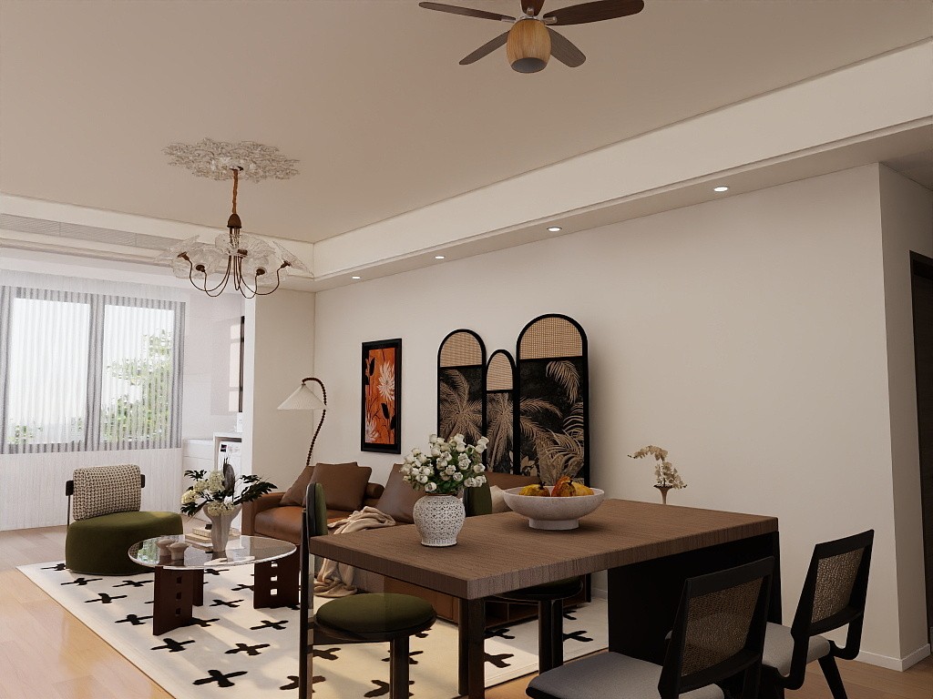 胡桃的沉暗配上暖色的墙面,复古而温馨