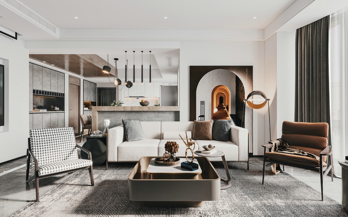 新中式造型,现代简约,定制柜子,增加储物功能。