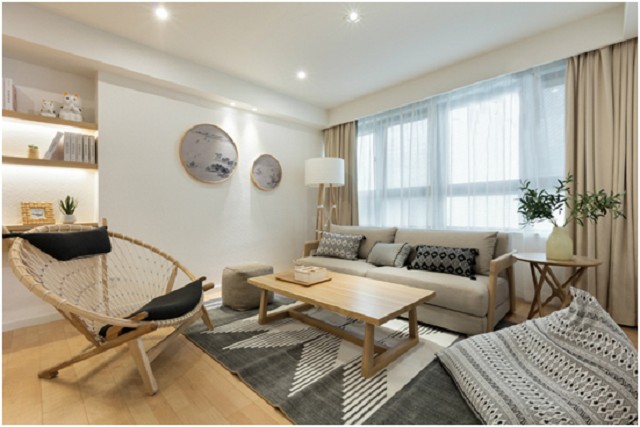 客厅日式风格偏于自然景色,给室内带来无限生机,选用材料上也特别注重自然质感,以便与大自然亲切交流,其乐融融。