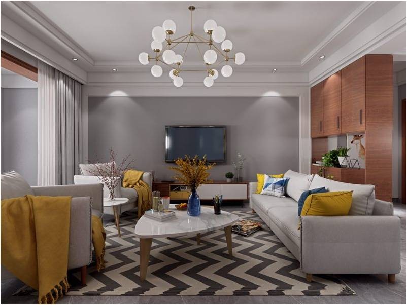 现代风格混搭北欧和美式,墙壁的调色处理显得整改空间更有层次感