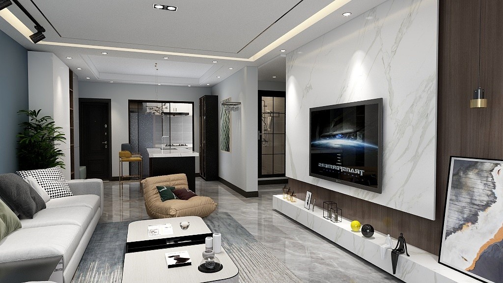 客厅与阳台打通后与户外自然景物衔接,让自然的光线迎着一个唯美的弧度投洒进来,窗帘在朦胧中交织成一片浑影,好似碧海中前行的帆船倒影,亮闪闪、明晃晃。