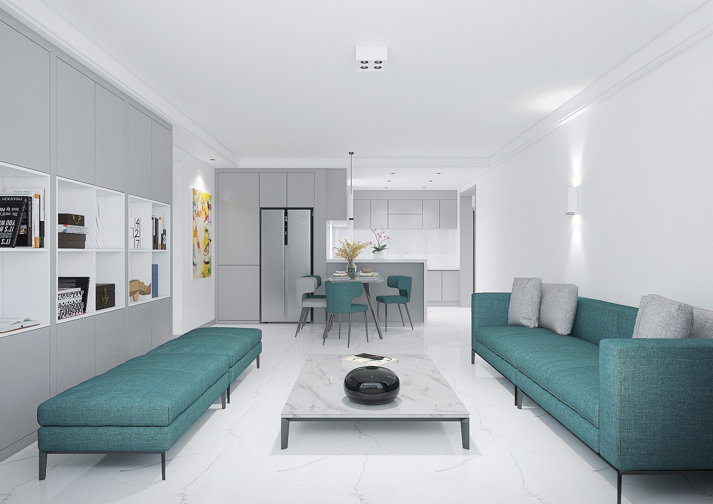 通体大理石瓷砖配灰色家具