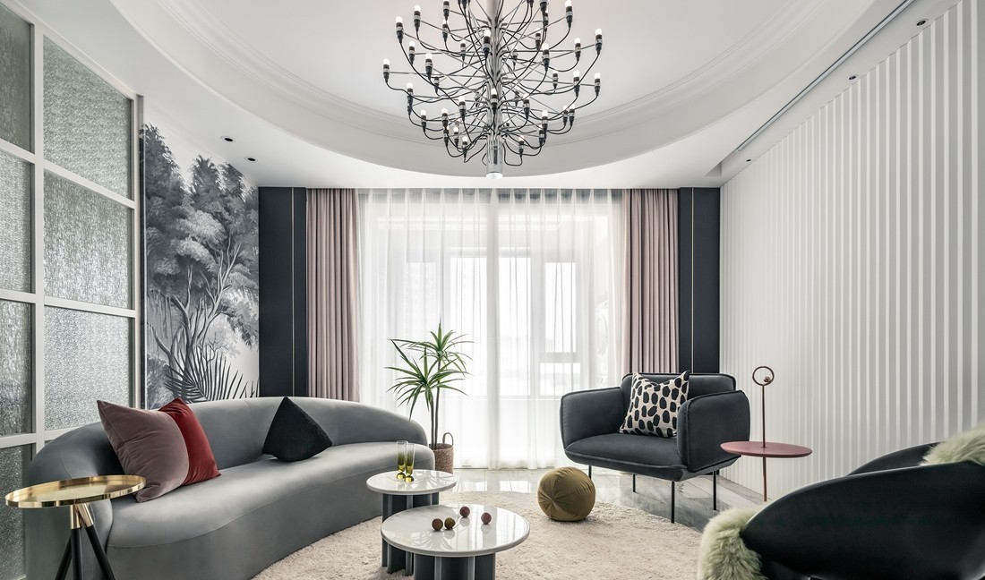 黑白灰为基底,以清新自然的绿色为点缀,揉合温煦的粉、质感软装等,勾勒现代时尚场景。每个角落都能感受到女主人温暖而自信的情感。