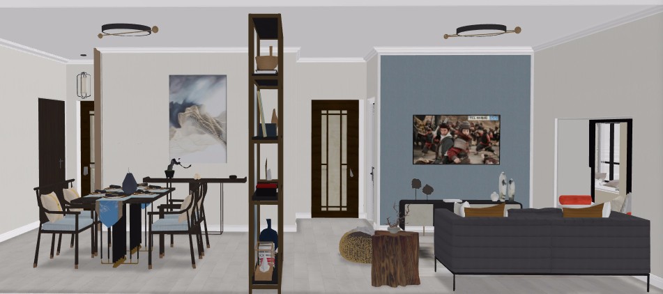 天津市咸水沽镇,93平米小两室,夫妻俩这套是第二套房子装修,根据业主双方审美,结合实际需求这套考虑新中式和现代风格进行混搭,简约而不简单。