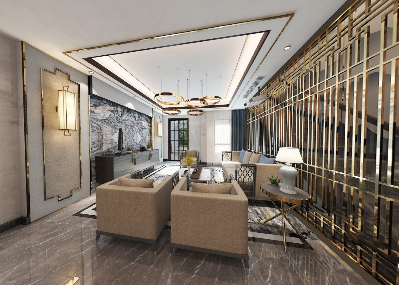 背景墙采用定制大理石。