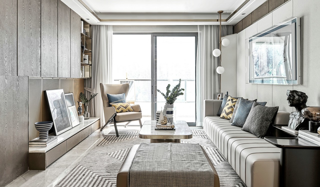 主卧室里特地留出了衣柜的嵌入空间,使绕过床边的过道通畅,高度灰和蓝灰色的床头床品,明度较低,更接近于中性色。Inyard镀金脚宝蓝色边柜,3分隔可以放下12本A3大小的杂质,方便十足,房屋两面有窗,光线充足,通透性极强,温暖的阳光能为业主带来***的好心情。