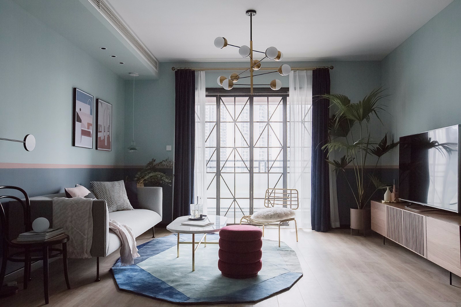黑框折叠门上部分采用清玻下半部分采用不透明的长虹玻璃,阳光可以完全照***。软装与空间构成点线面的穿插,简单利落,提升空间的层次感。客厅角落用蒲葵填充,室内也能感受到满满绿意,让人放松其中。