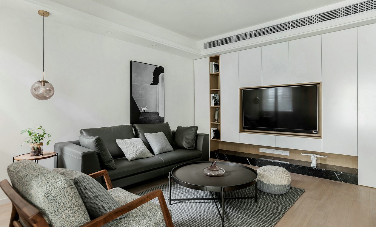 中小户型,首要解决收纳问题,所以设计了储藏式电视柜背景墙,延伸整面墙的储藏柜,加上卧室和其他空间的储藏柜,彻底解决收纳困扰。 设计上解决了“藏”的问题,剩下的就是“显”的呈现,卧室设计了“折叠门”“双开门”扩大了空间的既视感,卫生间做了“隐形门”也是为了归整视觉效果。 设计一切围绕着创新、实用、唯美、细致、环保、极简来呈现和表达,我们一直认为好的设计一定是实和美的结合。