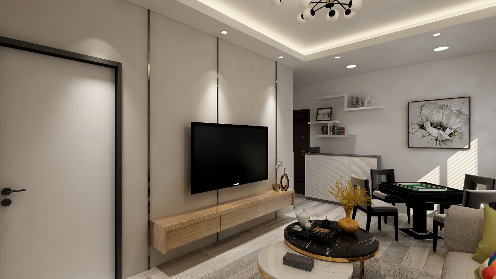 碰到一个小户型一定要让我们进门***眼就感觉很清爽,而不是很压抑,所以家具和柜体都不宜用***太多