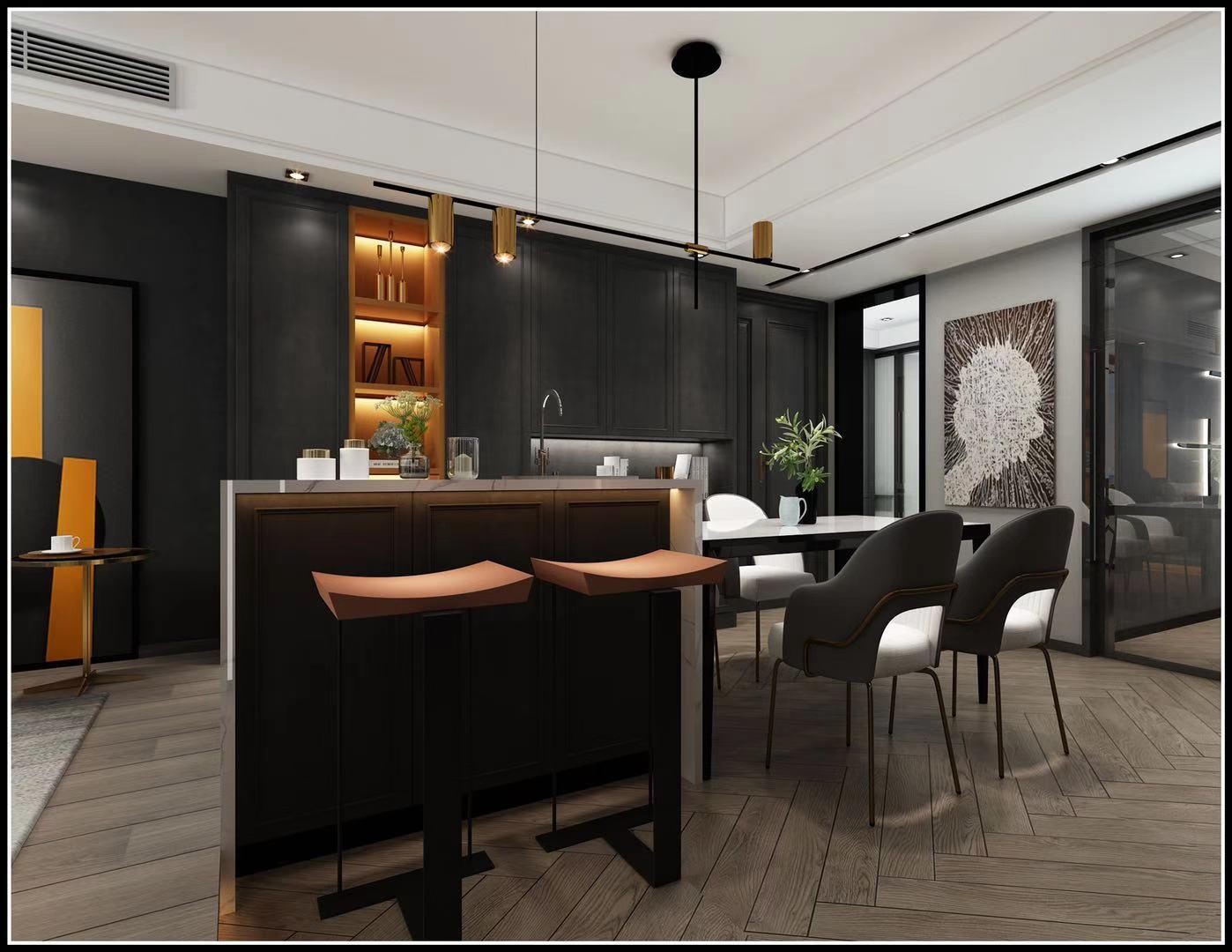 天竺花园现代风格餐厅开放式厨房