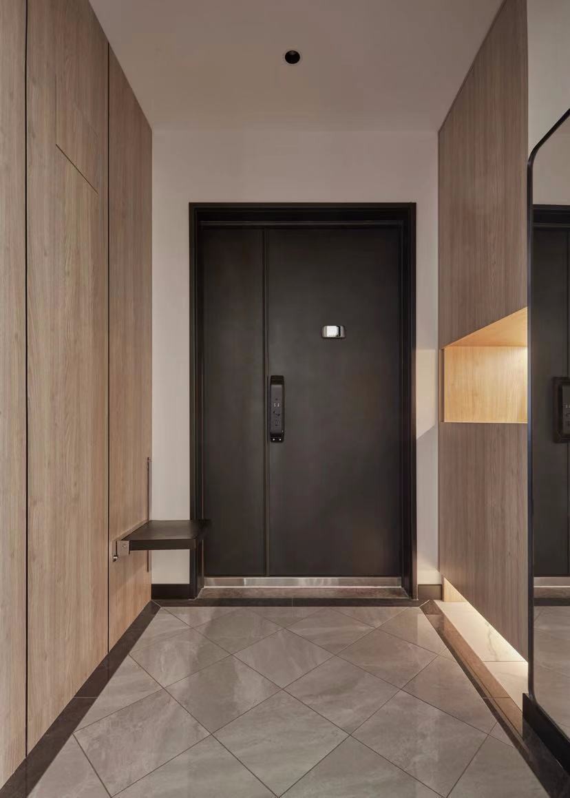 改造后门厅面积x2,原来只有一个单独的薄柜,现在是进深60公分的组合柜、大面的穿衣镜、换鞋凳和挂衣钩。 过门石分隔门厅和客厅,让门厅成为一个独立完整的区域。