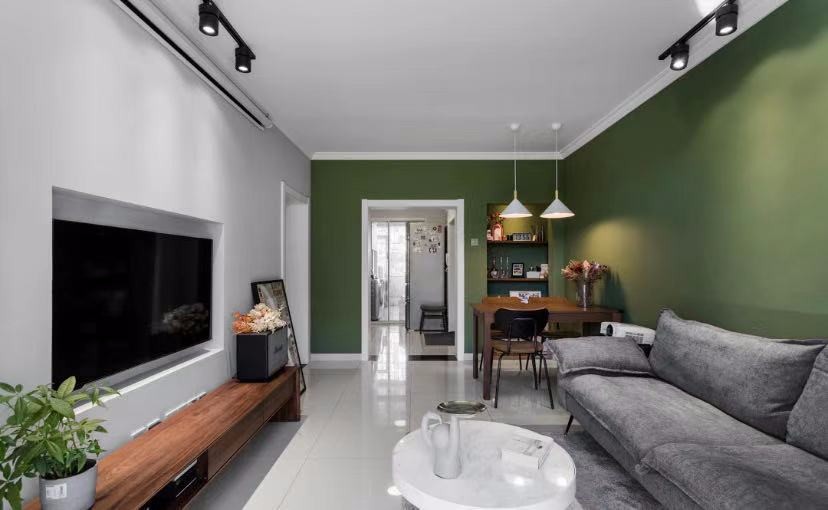 对于小户型来说空间的视觉感官和储物非常重要,整个项目以墨绿和白色作为主色调,氛围上更清新明亮,视觉上也更开阔。