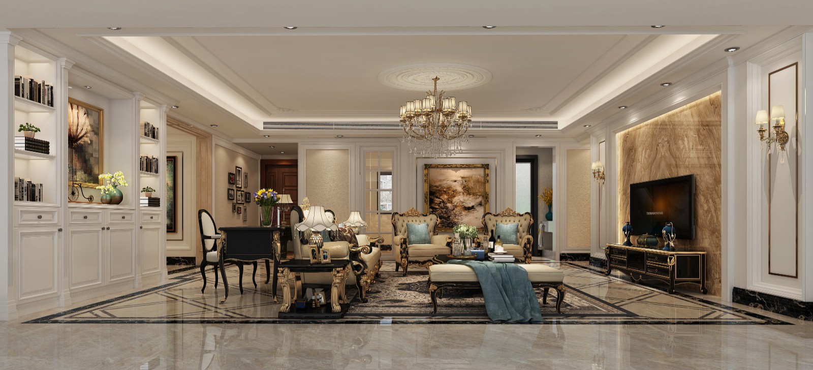 本案例整体强调以华丽的装饰、浓烈的色彩、精美的造型达到雍容华贵的装饰效果。