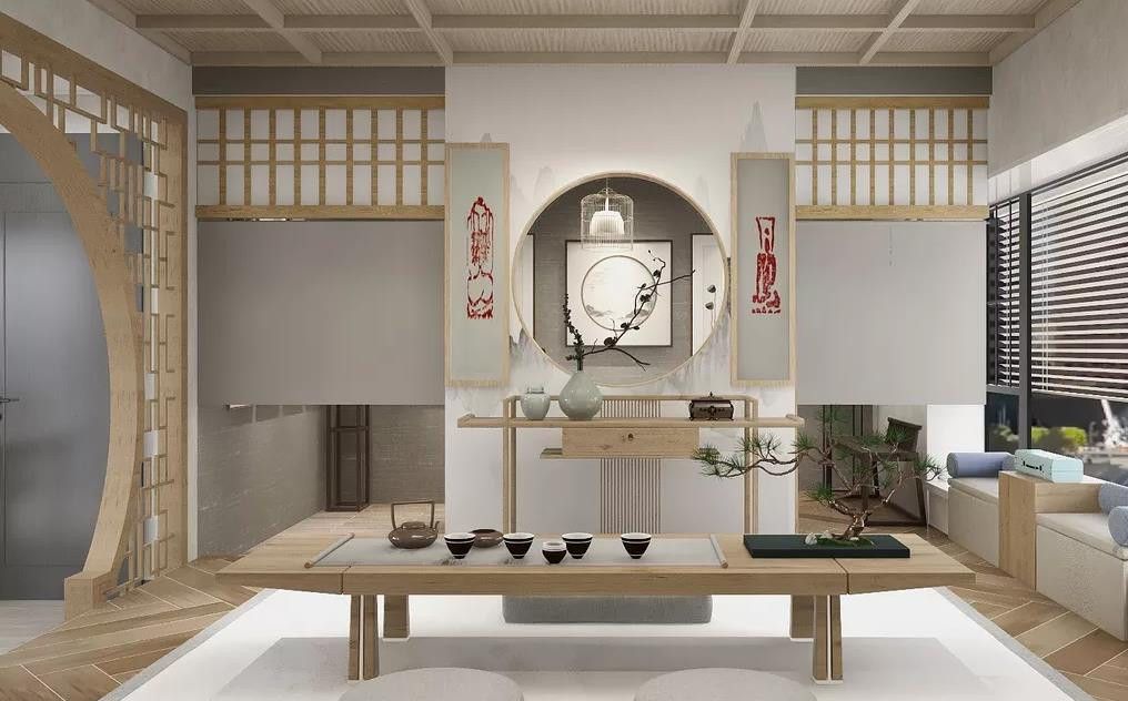 业主是一位单身男性,喜欢读书书法画画。本案主要是以原木自然风和白灰色为主色调,利用造型给空间做划分,自然过渡又不乏意境,营造一个舒适的禅意之家。