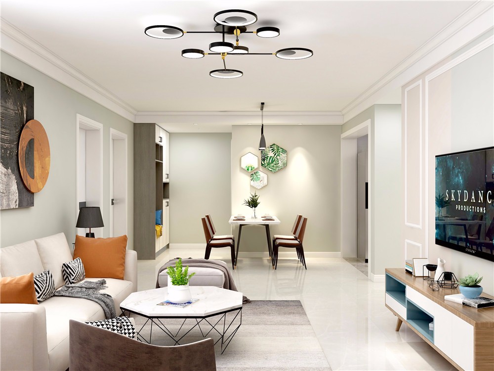 客厅空间宽敞明亮,色调清新
