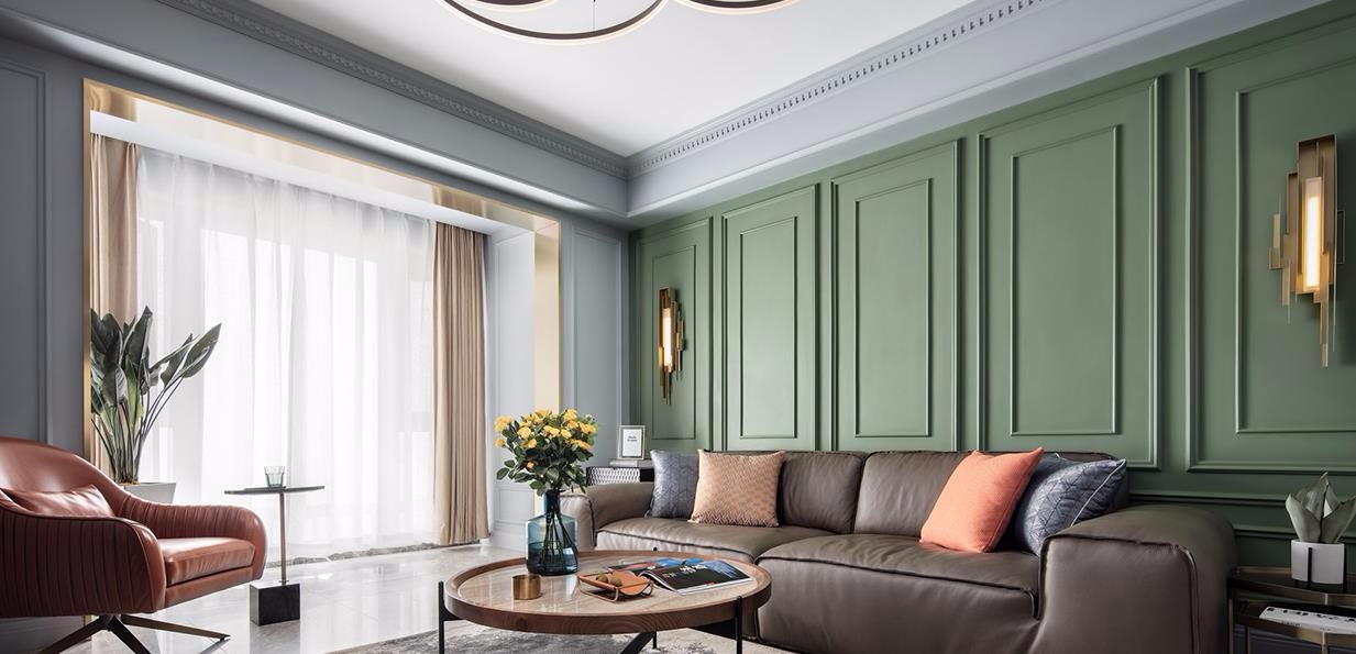 客厅是一家人的中心点也是一间房子里最为亮点的部位。纯净的大自然色——绿色、纯白、灰色,搭配极具跳跃的点点色彩,使整个空间大气却又不失活泼。