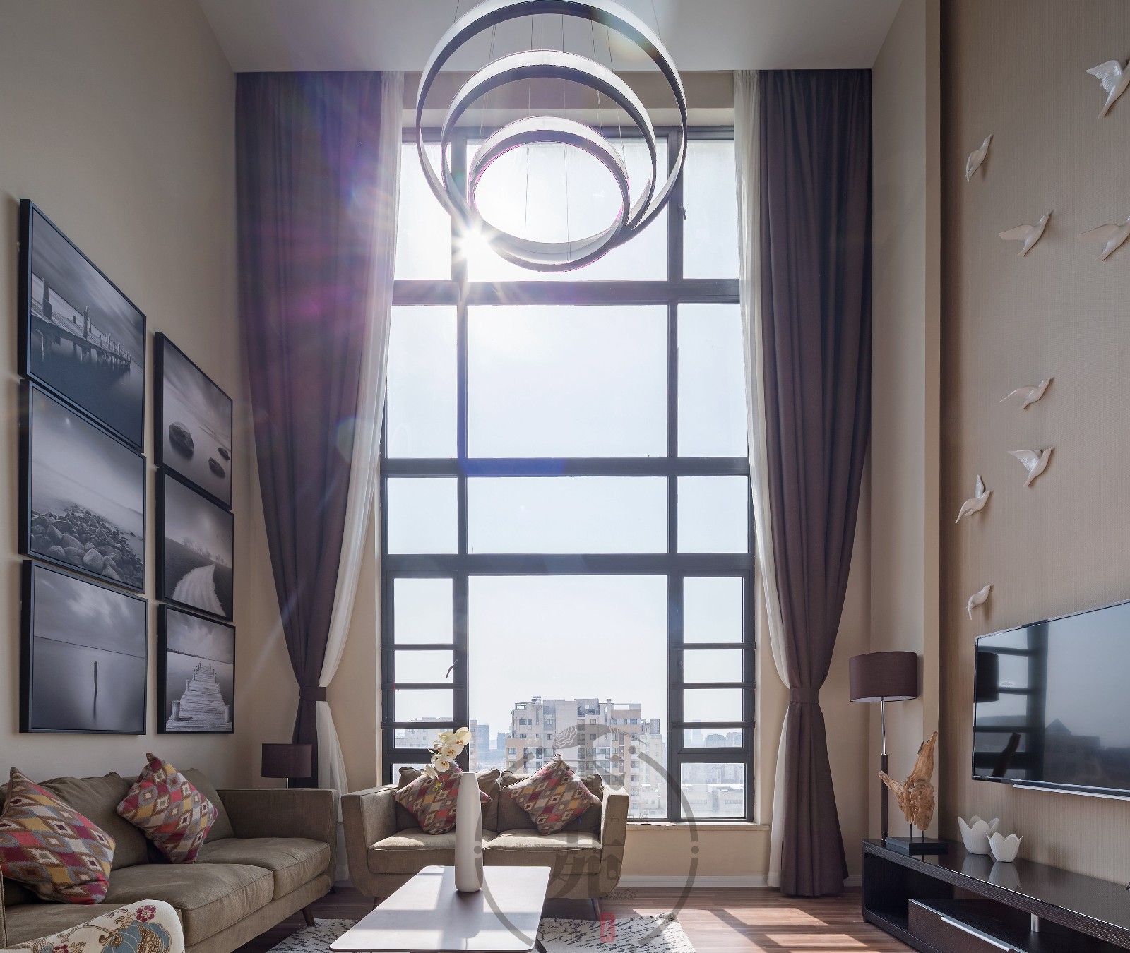整个房子以“黑白灰”为主色调,加上设计师精心挑选的壁纸、地毯、花瓶、台灯、油画都为整个家注入了更多温馨和美好