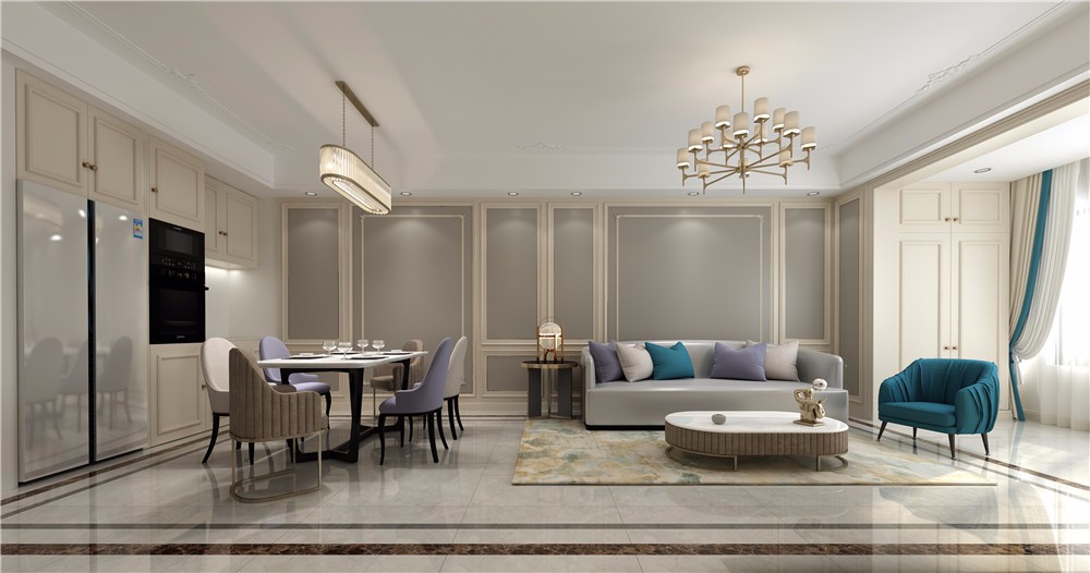 加入了餐椅的紫色作为调剂,整体感更时尚