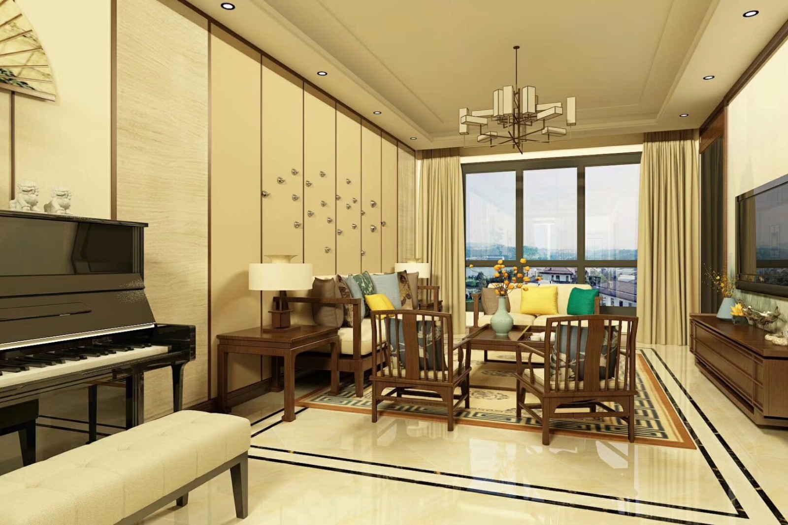 中国传统的客厅设计融合了庄重与优雅双重气质。