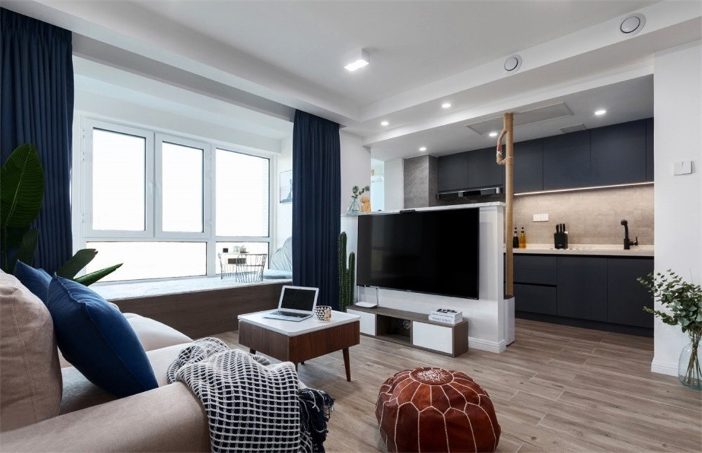 户主是一对喜欢现代风的夫妻,三口之家,还打算生二胎。女主人喜欢蓝色,所以空间内点缀一些蓝色元素。70㎡的一居室,空间不大,又加上本身户型缺陷,存在很多像烟囱占道,床***放不进卧室,小房间不好分配空间等问题,让原本局促的空间显得更狭小。但经过设计师与户主用心协调、策划、设计后,问题全部得到解决。