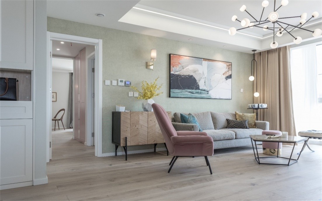 本案基调为北欧***,强调简约、清新和舒适自然,不过在色彩搭配上加入了更多丰富的元素,让整个房子显的非常温馨,搭配在一起让人觉得既美观又温馨实用。 虽然北欧风格是以简约的白、灰而闻名,但其实它也并不缺乏丰富色彩的点缀。在本案中很好体现了此点,比如玫瑰金、浅黄色等色彩的巧妙植入,勾勒出别样的风情。