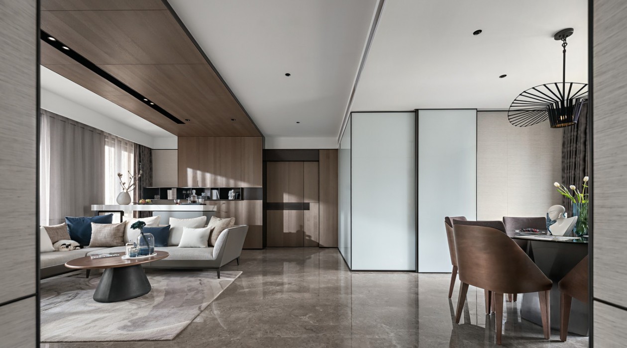客厅舒适的沙发和吧台区,让其具有足够地开放性,满足多人的会客功能。