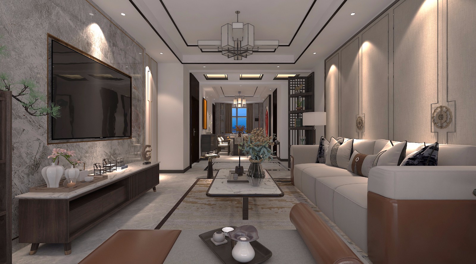 新中式元素里更多的融合些流行的材质与风格。