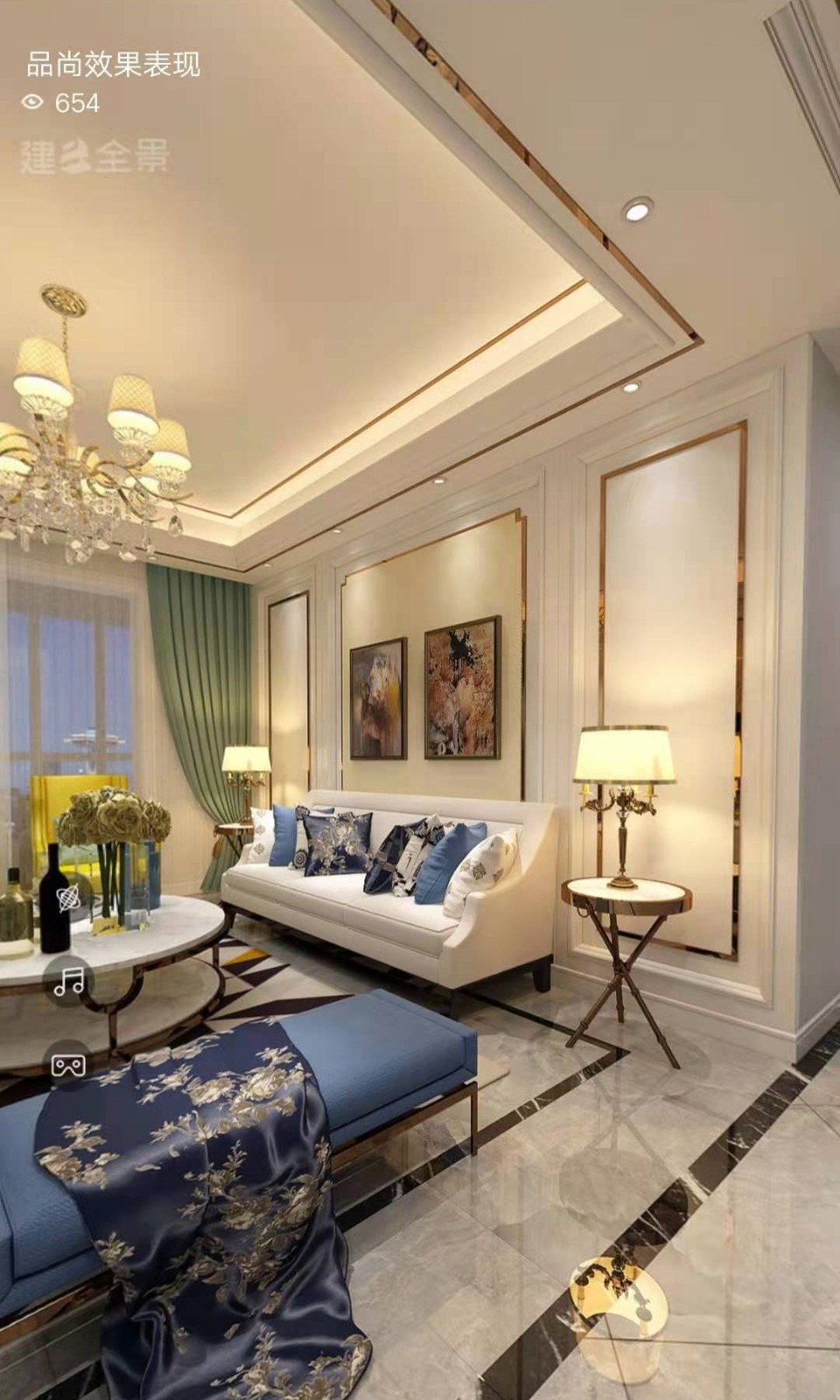 简欧风格电视墙,搭配***金金属条,高端大气、凸显时尚。