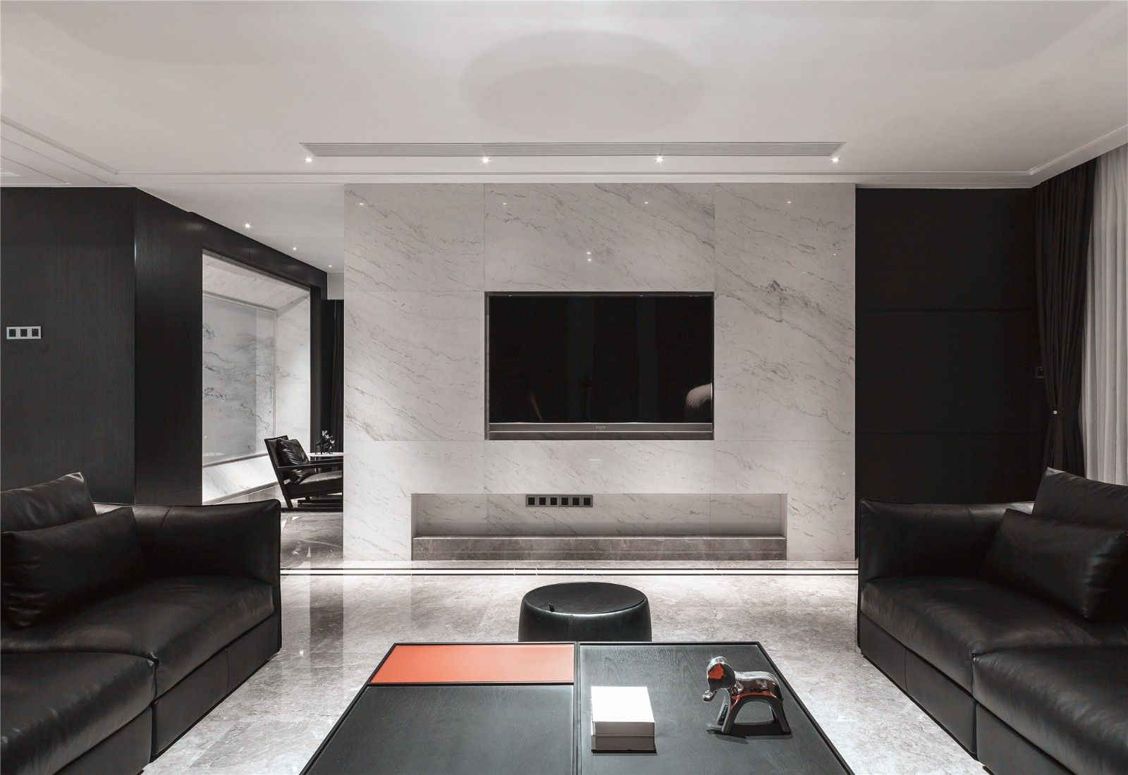 软装饰的细腻温和与冷冽大理石相配 像是理性与***的对话