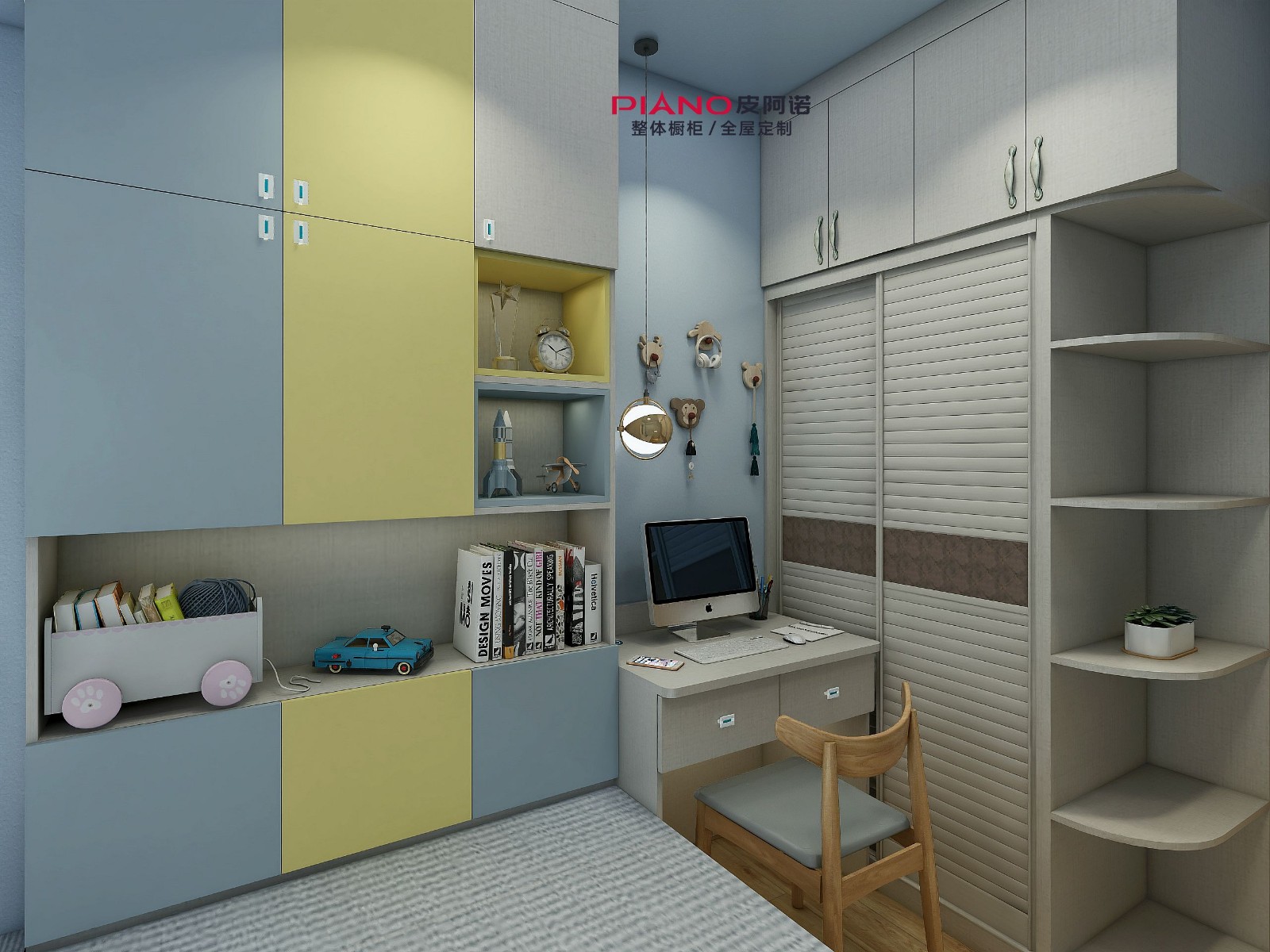 儿童房改造,比较喜欢黄色与蓝色,而且要配书桌,要做储物柜空间利用,所以做了榻榻米与书柜组合;