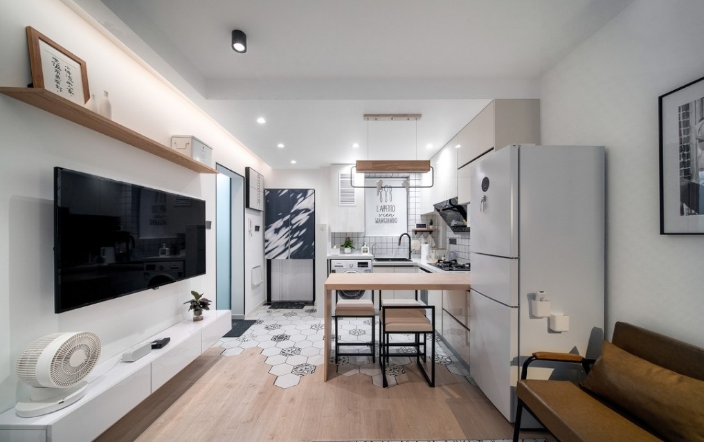 小白砖、原木色调的吧台桌、冰箱……这些年轻人喜爱的家居元素,让生活更多一分惬意。