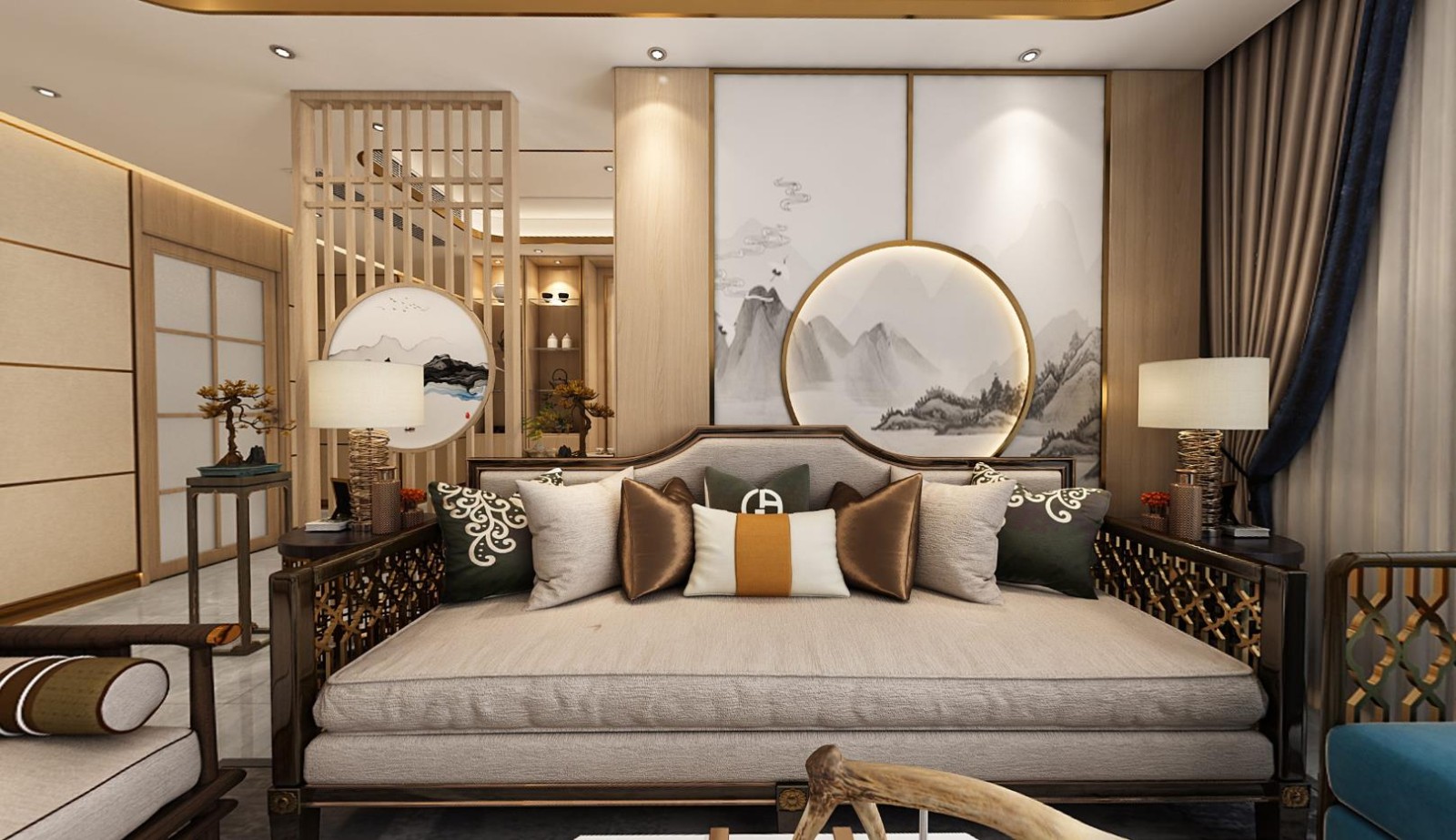 主卧结合舒适整洁的软装搭配,呈现出一个时尚端庄的空间感。