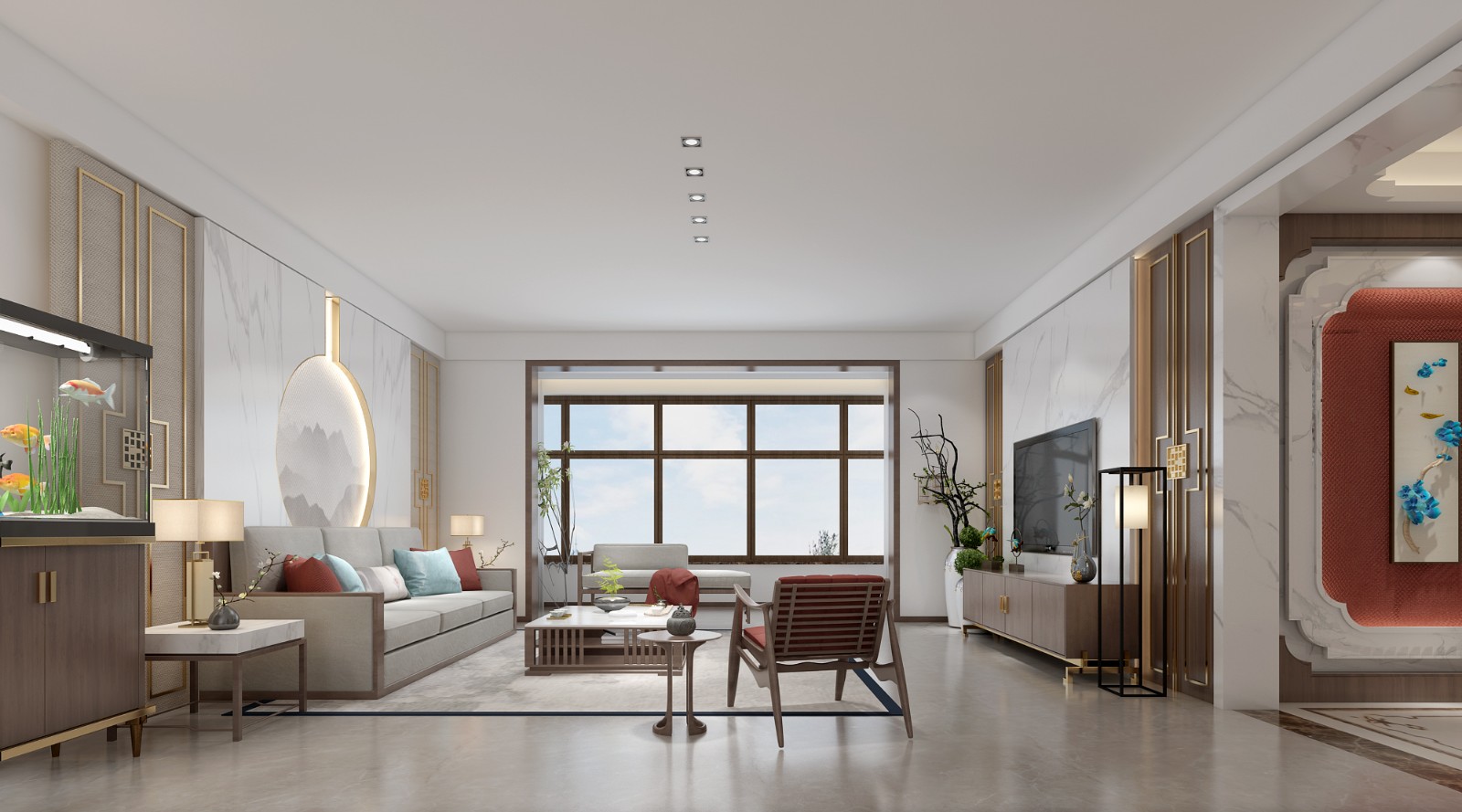 客厅抛开一切冗余的元素 简单的线条、简约的家具彰显优雅格调 注重一点、***、一面及细节处理 白色的大理石纹路与灰色沙发 在温和的木皮下 空间里散发出雅致的轻奢感 呈现出一种感官上的时尚感