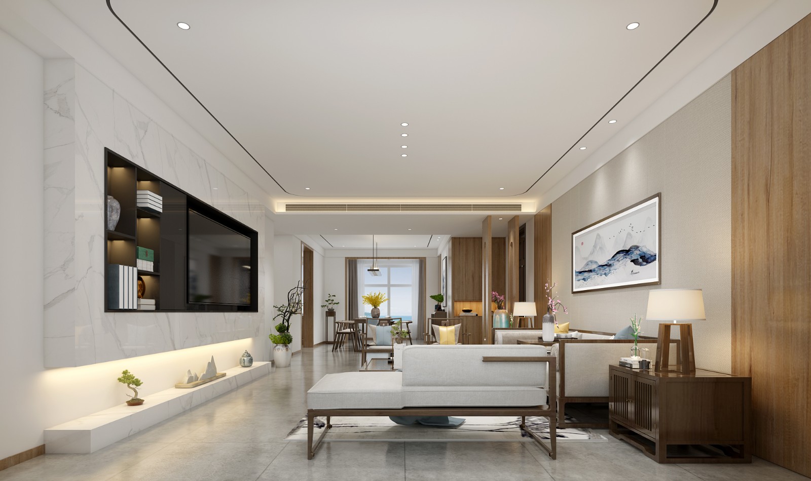 整体风格为新中式,对材料理的质感、肌理、形制、色系都精心考究。