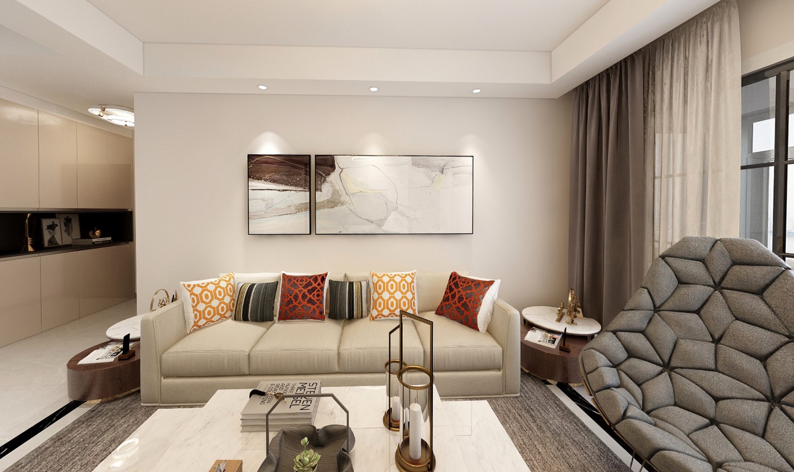 轻奢典雅、时尚大方,家居的装点典雅大方的视觉风格。
