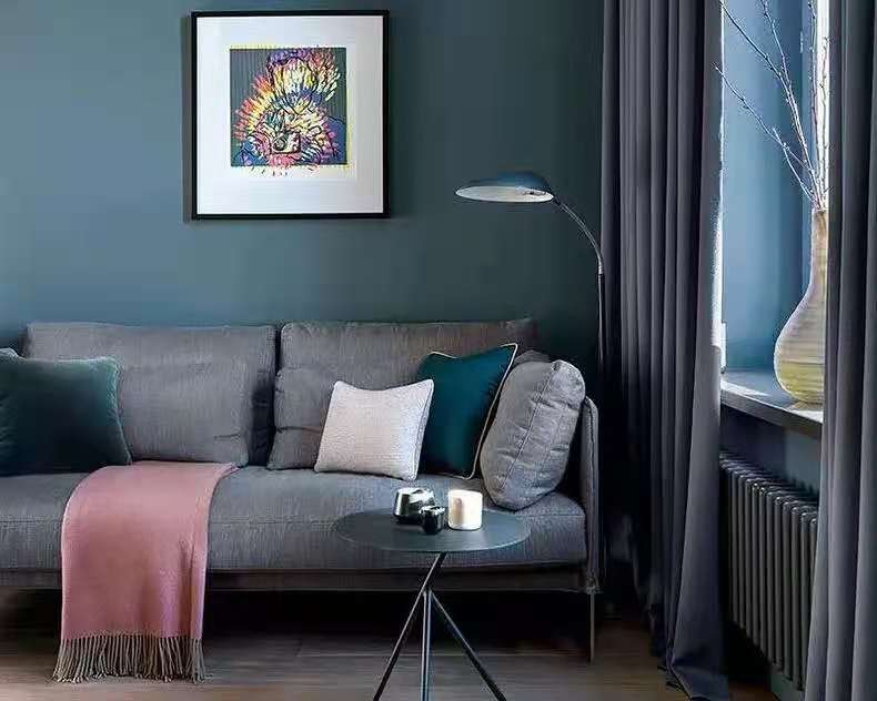 “***灰”近年来大火,它是一个奇妙的存在,不管是活泼跳跃还是沉稳低调的色彩都能和它组成和谐的cp,可温暖可冷淡。屋主选用的是布艺沙发,为空间增添了居家气息,中和了冷色调的距离感。
