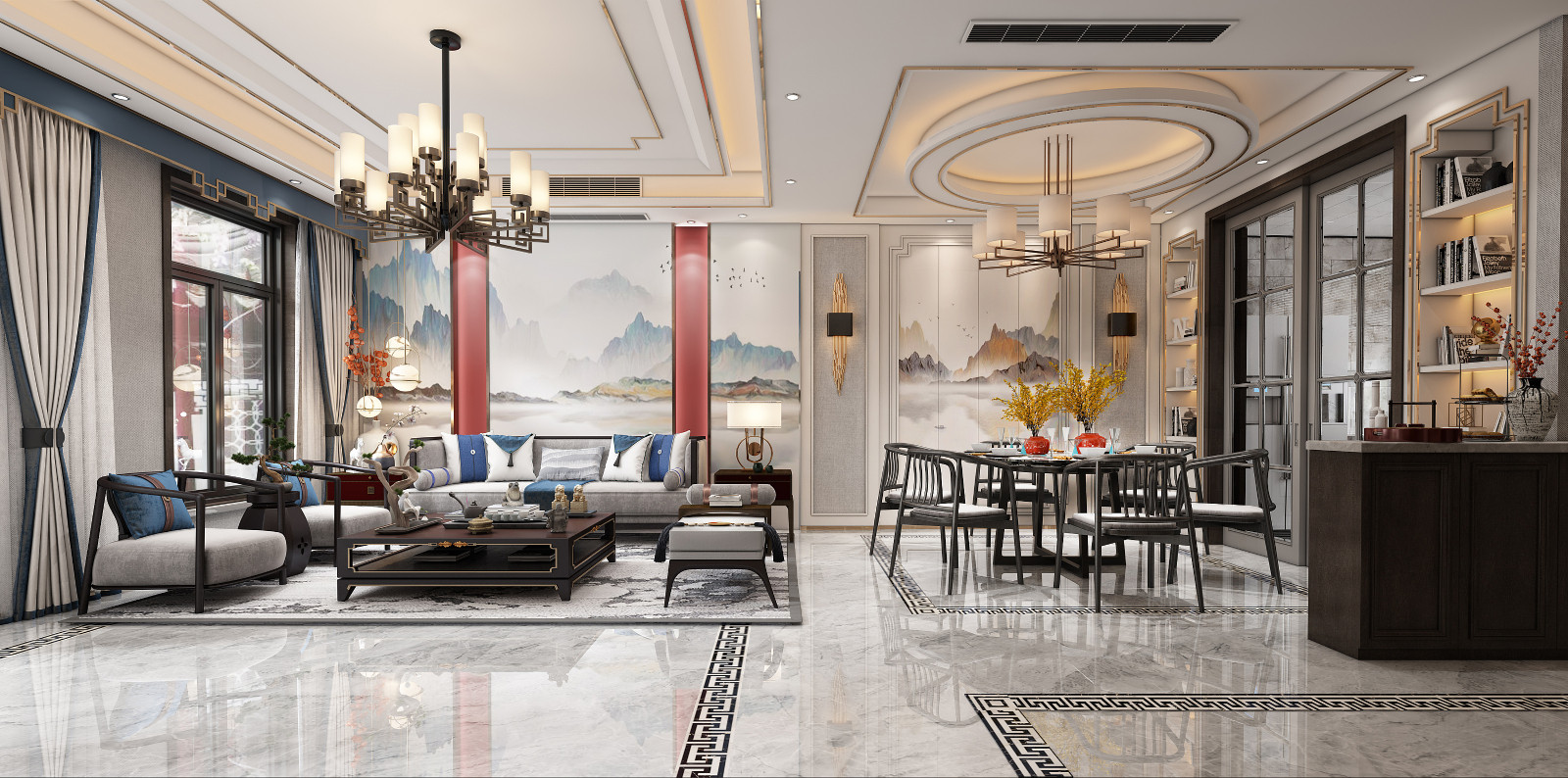 应客户要求,本案为新中式风格。新中式从中国传统文化中演变,发展,国力强盛,传统的中式风格,思维固化统一,对称为主。新中式在传统中式保留对称、木工的基础上,更多的融入了现代的元素。